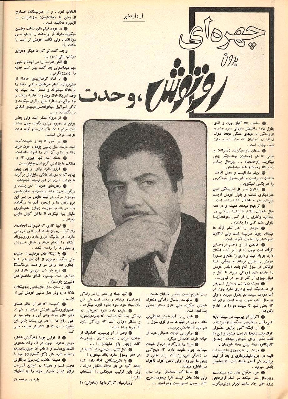 اردشیر، ”وحدت،“ فیلم و هنر، شماره ۲۶۳ (سال ششم ۲۸ آبان ۱۳۴۸): ۱۴.