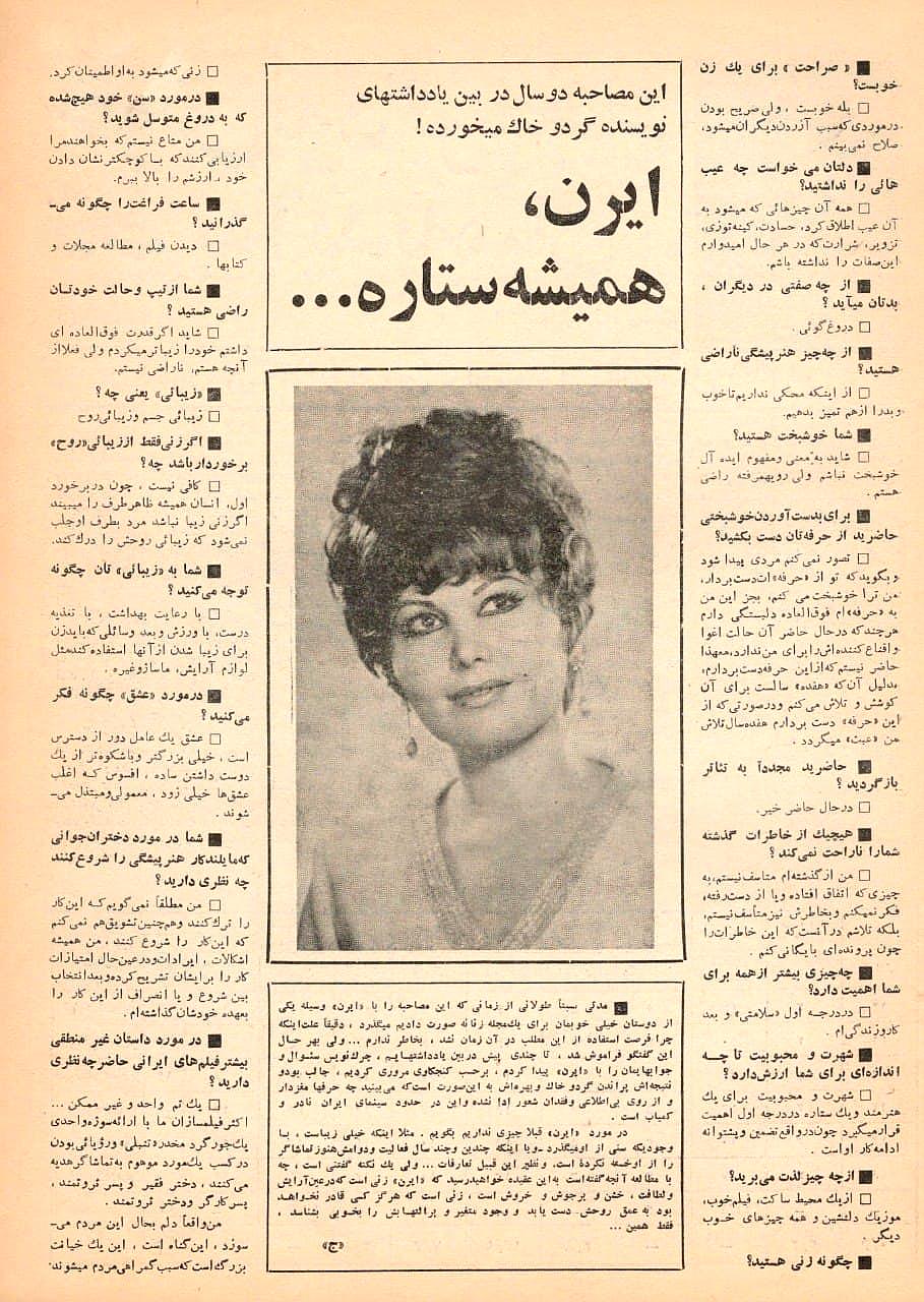 ”ایرن، همیشه ستاره،“ فیلم و هنر، شماره ۲۸۹ (سال هفتم ۲۰ خرداد ۱۳۴۹): ۹.