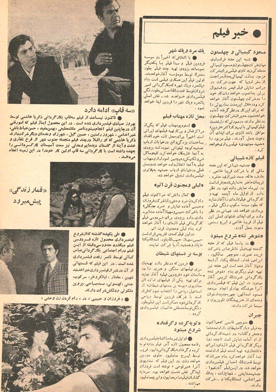 ”خبر فیلم،“ فیلم و هنر، شماره ۲۸۹ (سال هفتم ۲۰ خرداد ۱۳۴۹): ۴-۵.