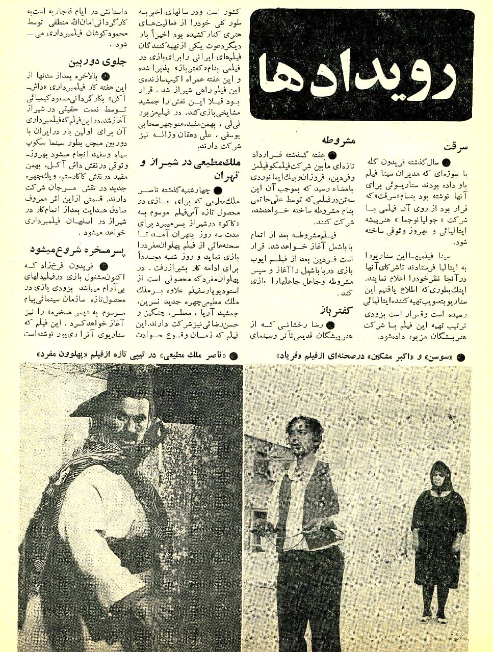 ”رویدادها،“ فیلم و هنر، شماره ۳۱۵ (سال هفتم ۳ دی ۱۳۴۹): ۴-۵.