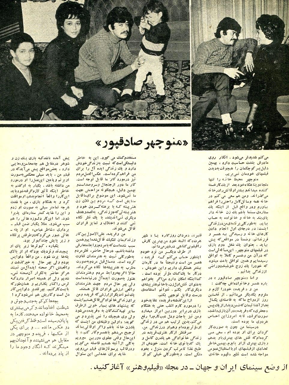 ”منوچهر صادق‌پور،“ فیلم و هنر، شماره ۳۲۴ (سال هفتم ۶ اسفند ۱۳۴۹): ۱۱.