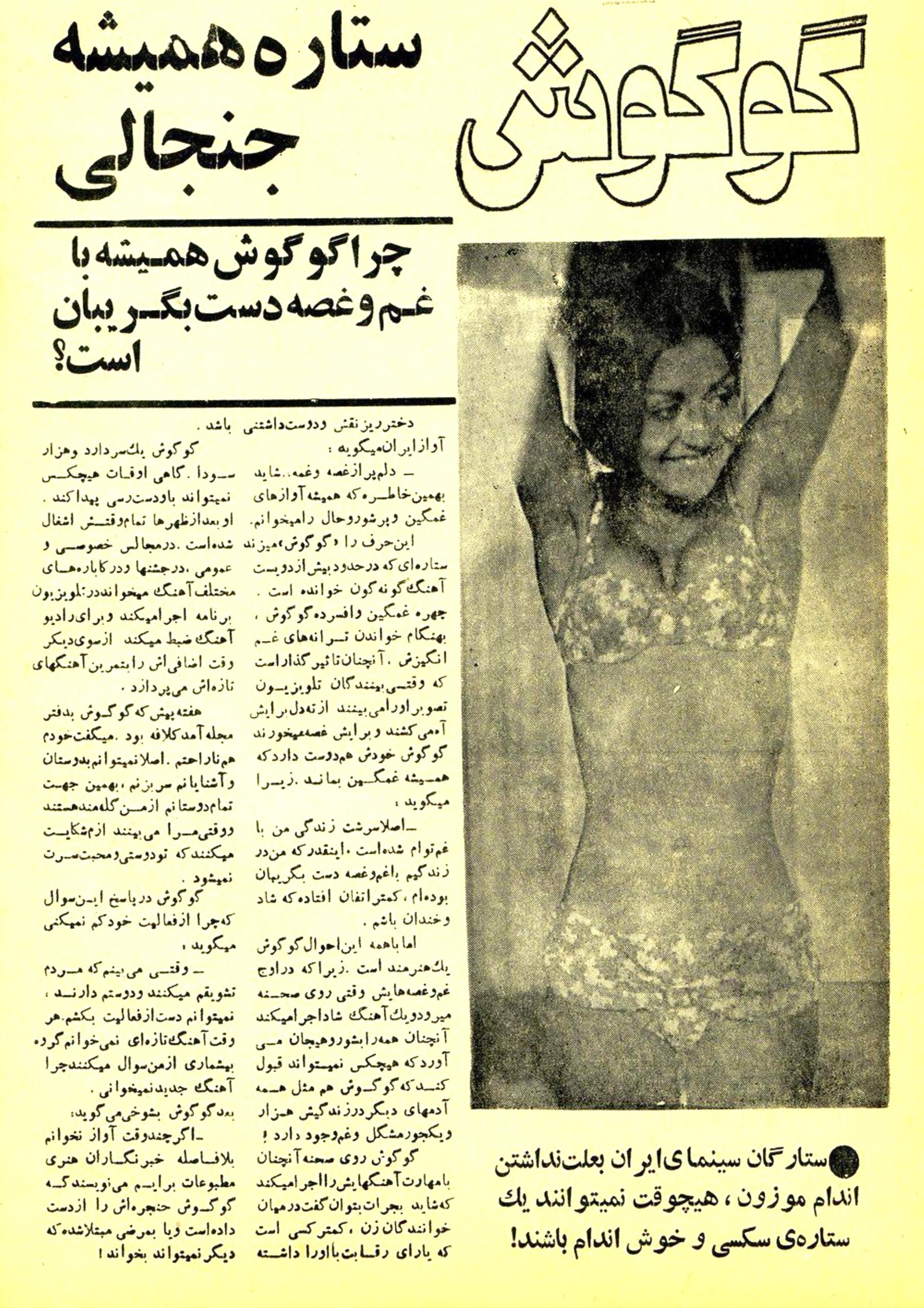 ”گوگوش،“ فیلم و هنر، شماره ۴۶۹ (۱۳ اردیبهشت ۱۳۵۳): ۱۶-۱۷.