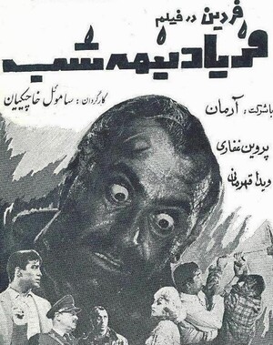 Figure 5: Poster for The Midnight Terror (Faryād-i Nīmah’shab). The inscription reads: “Fardīn in The Midnight Terror. Director: Samuel Khāchīkiyān,” followed by the names of the principal actors.