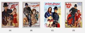 Genre cinema never became the mainstream of Iranian cinema; in fact, Iranian cinema is confined to local genres that blend several different genres. For example, the fīlmfārsī genre, reaching its peak of popularity in the 1960s and 1970s, is a combination of comedy-romantic and sometimes musical genres, with some fight scenes that are specific to the action genre or even the martial arts genre. But comedy and action genres hold a special appeal for Iranian audiences across several different periods, and some well-known films are made in these genres. Posters of Parvīz Sayyād’s comedy franchise with the famous character “Samad” introduce us to the concept of transferring the genre and theme of the movie into the movie poster (Figure 10).