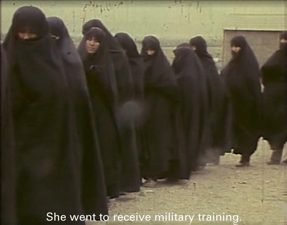 Figure 27: Women at a military training camp during the Iran–Iraq War. A still from the film Radiograph of a Family (Rādīyugrāphī-i yak khānavādah), directed by Fīrūzah Khusruvānī, 2020. Accessed via https://www.youtube.com/watch?v=wCdfxBnC8_o (00:01:21).