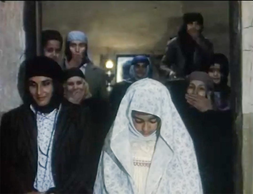 This film portrays several symbolic layers relevant to this study, particularly through a gendered ‛aqd scene that foregrounds the performative dimensions of the Iranian marriage ceremony. Gulbutah, the young daughter of a struggling fatherless family, is effectively traded in a transactional marriage arrangement rooted in poverty and maternal disempowerment. Her marriage is framed not as a personal choice, but as a necessity for family survival. In one sequence a child asks whether Gulbutah is truly leaving to marry. Rizvānah replies, “Every girl finally leaves her house.” “To where?” asks the child. “To their man’s house—like me, who left my family’s house for your dad’s.” This dialogue reveals that marriage is a prescribed destiny for girls—a passage from one patriarchal household to another. In deeper layers of Rizvānah’s role, although we can sense her disappointment with this destiny, she has no choice but to force Gulbutah to enter this institution for the sake of the family’s survival.