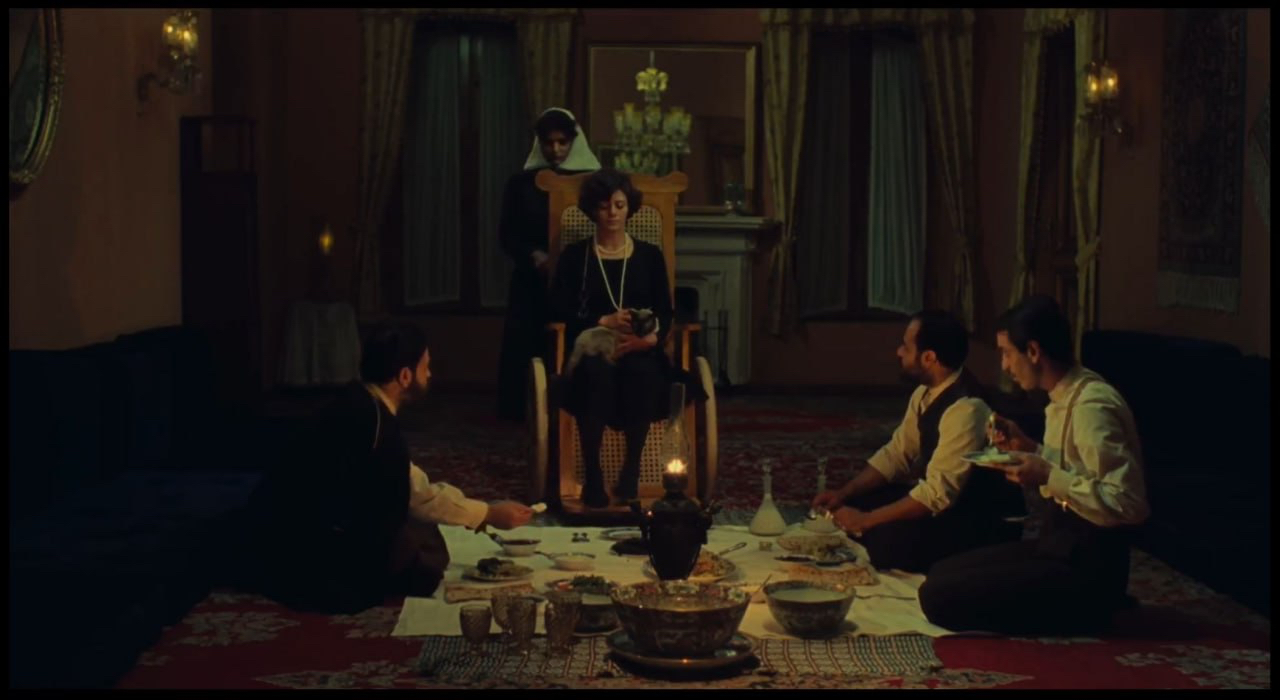 A paralyzed aristocratic woman conspires with her maid—who is also her companion and lover40Chess of the Wind, dir. Muhammad Rizā Aslānī (Iran: Tehran, 1976), 00:61:00. —to murder her stepfather, Atābak. Khānūm Kūchak ultimately dies as part of the maid’s plot, who shares the plan to murder Atābak with her.41Chess of the Wind, dir. Muhammad Rizā Aslānī (Iran: Tehran, 1976), 00:35:40. Despite this relationship, the maid’s ultimate goal, in collaboration with one of Atābak’s nephews, was to murder Khānūm Kūchak and seize her maternal inheritance because Atābak, a man of the bazaar who appears religious and traditional but is, in fact, foul-mouthed and lustful in sexual desire to maid, had secretly transferred the estate of Khānūm Kūchak’s deceased mother into his own name.42Chess of the Wind, dir. Muhammad Rizā Aslānī (Iran: Tehran, 1976), 00:04:35. Meanwhile, Atābak’s nephew, Sha‛bān, a nouveau riche and pretentious intellectual figure, was in league with the maid. Having promised her marriage, he intended to kill both his uncle and Khānūm Kūchak in order to use the wealth from her mother’s estate to establish factories, thereby reviving their aristocratic lineage under the guise of industrialism and capitalism.43Chess of the Wind, dir. Muhammad Rizā Aslānī (Iran: Tehran, 1976), 00:91:00. The other nephew, on the other hand, sought to marry Khānūm Kūchak and, after his uncle’s murder, attempted to rent out their manor house to the English for speculative and unproductive activities, in a bid to generate effortless income by renting out the property.