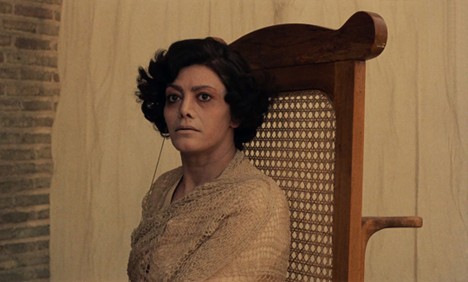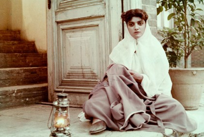 Figure 9: Khānūm Kūchak (Fakhrī Khurvash), a paralyzed woman in a wheelchair inside a manor house in Tehran. A still from the film Chess of the Wind (Shatranj-i Bād), directed by Muhammad Rizā Aslānī, 1976.