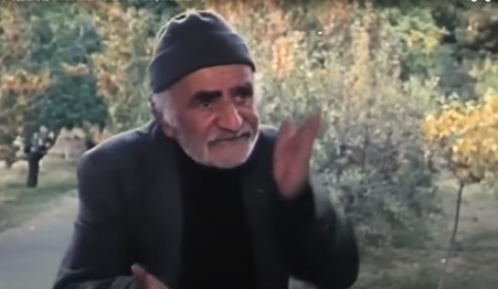 Figure 2-3: The gardener expresses his frustration at the pear tree’s lack of fruit, gesturing and speaking aloud while the tree itself remains off-screen. Still from The Pear Tree (Dirakht-i Gulābī), directed by Dāryūsh Mihrjūyī, 1998 (00:12:37).