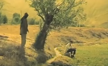 Figure 2-4: Mahmūd as a child standing next to Mīm, with the pear tree visible in the background. Still from The Pear Tree (Dirakht-i Gulābī), directed by Dāryūsh Mihrjūyī, 1998, (00:23:55).
